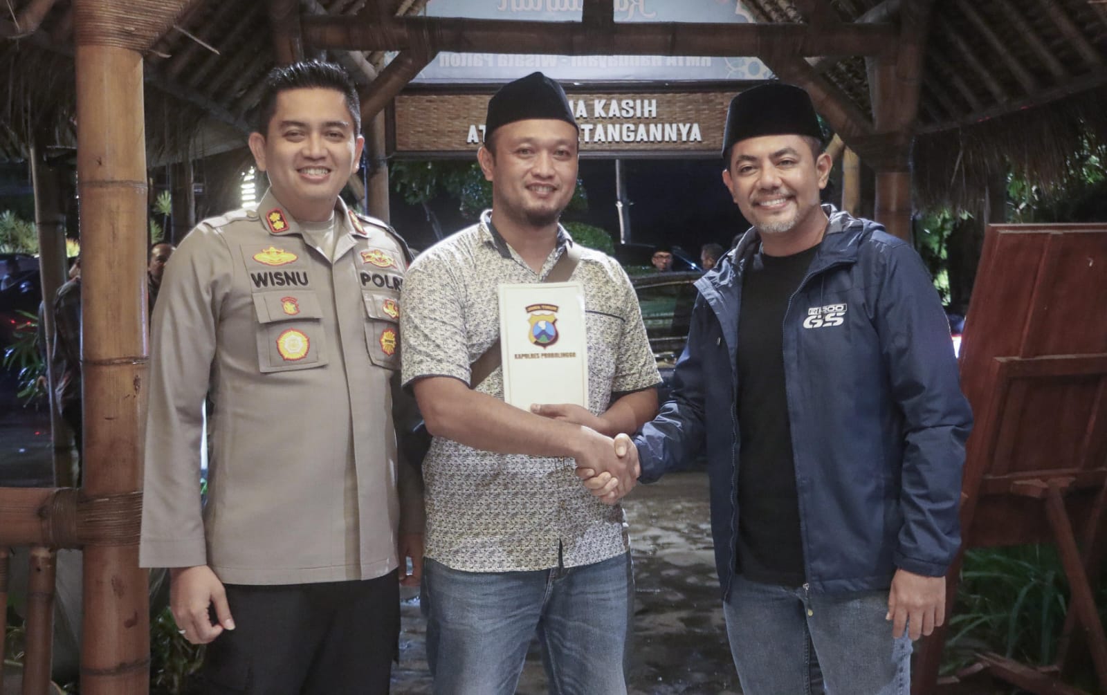 PROBOLINGGO – Bupati Probolinggo dr. Mohammad Haris atau Gus Haris bersama Kapolres Probolinggo AKBP Wisnu Wardana memberikan apresiasi kepada Aipda Andik Muhyeni, Polisi yang berhasil melumpuhkan dua begal di perempatan pabrik Sasa Gending, pada Sabtu (22/3/2025).