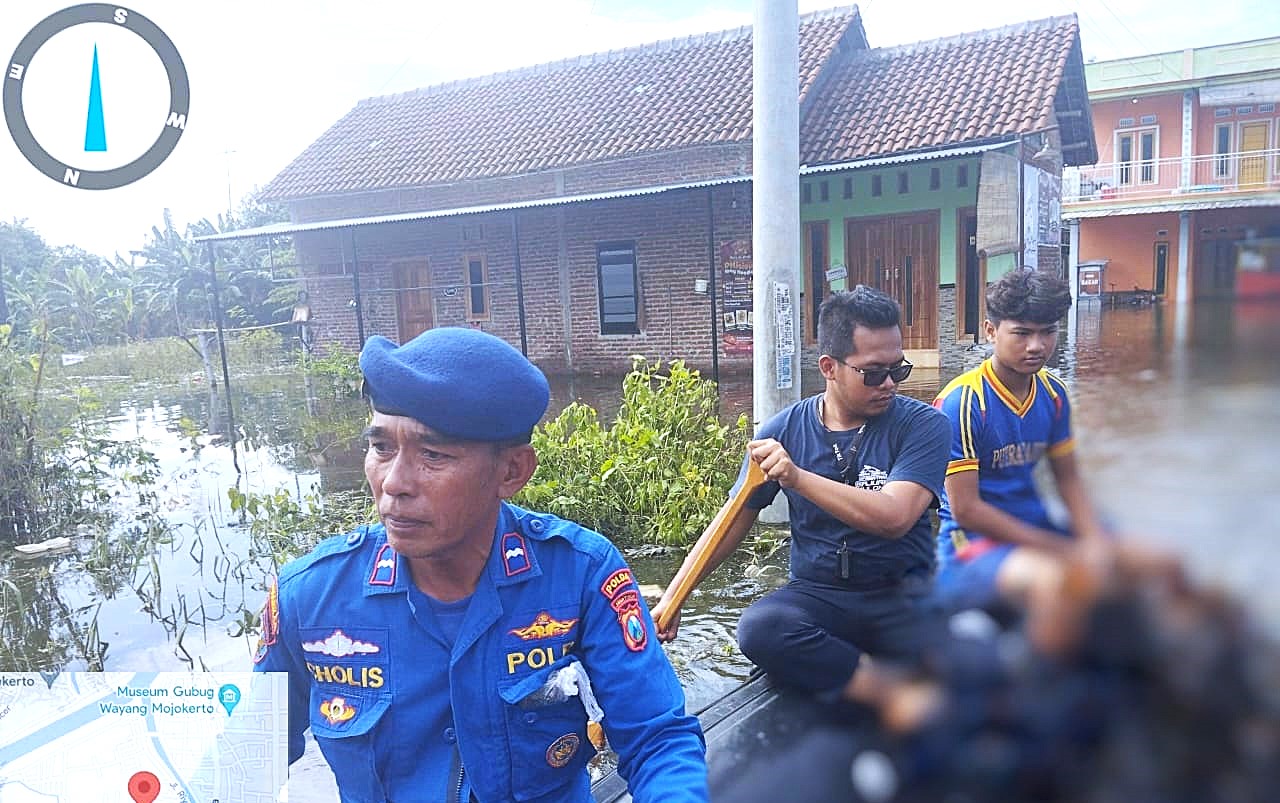 MOJOKERTO – Direktorat Polisi Perairan dan Udara ( Ditpolairud) Polda Jatim kerahkan sejumlah personel untuk penanganan bencana banjir di Mojokerto Jawa Timur.