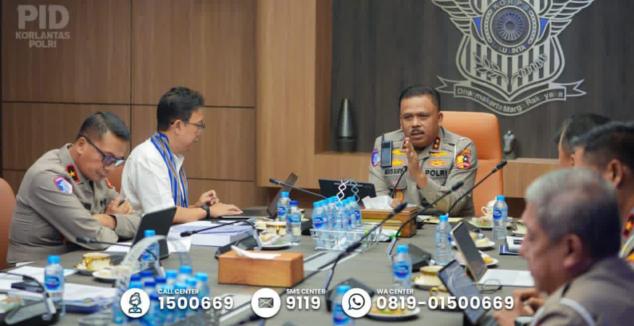 JAKARTA – Kakorlantas Polri Irjen Pol Drs. Agus Suryonugroho, S.H., M.Hum., menerima paparan dari Dekan Fisip UI Prof. Semiarto Aji Purwanto terkait “Survei Evaluasi Pengamanan Arus Mudik 2025 dan Rencana Mudik 2026” di NTMC Korlantas Polri, Selasa (15/4/2025).