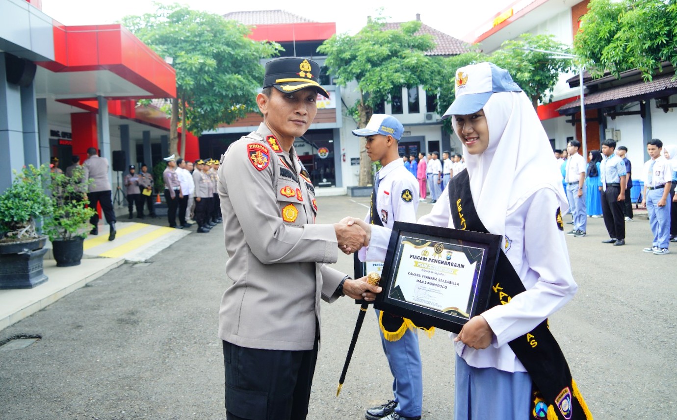 Pengukuhan tersebut dilaksanakan di halaman Mapolres Ponorogo dengan menggelar Upacara Pengukuhan Pelajar Duta Kamtibmas, Rabu (12/11/2025).