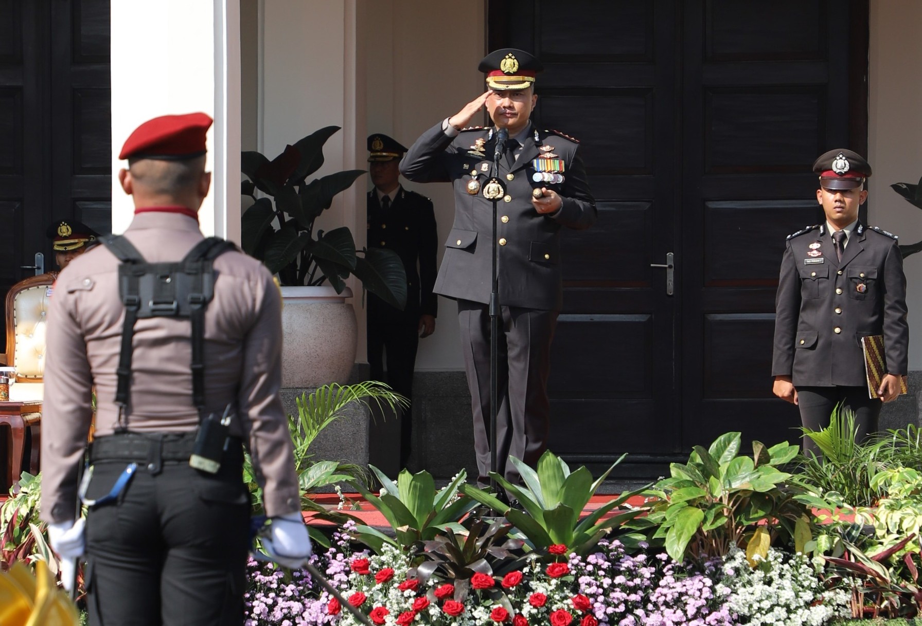 Kombes Pol Nanang saat menyampaikan amanat Kapolda Jawa Timur Irjen Pol Drs Nanang Avianto MSi, ia tekankan pentingnya kolaborasi dan sinergi untuk meningkatkan keamanan wilayah.
