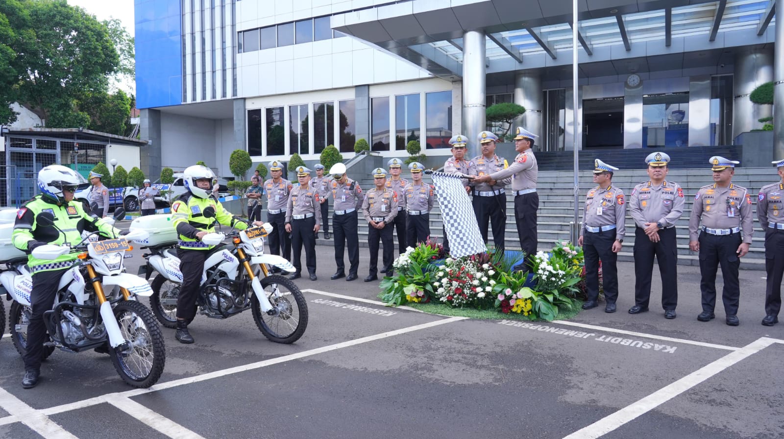 Turut mendampingi, Dirgakkum Korlantas Polri Brigjen Pol Raden Slamet Santoso, Dirregident Korlantas Polri Brigjen Pol Wibowo, Kabag Ops Korlantas Polri Kombes Pol Aries Syahbudin, Kabag Renmin Korlantas Polri Kombes Pol Made Agus dan PJU Korlantas lainnya.