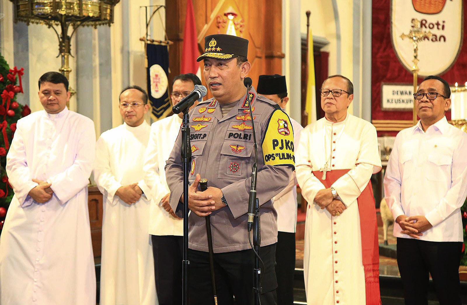 JAKARTA – Kapolri Jenderal Polisi Drs. Listyo Sigit Prabowo melakukan pengecekan kesiapan personel pengamanan ibadah misa malam Natal di Gereja Katedral Jakarta. Pengecekan dilakukan sebelum dimulainya misa pertama di Gereja Katedral pukul 17.00 WIB.