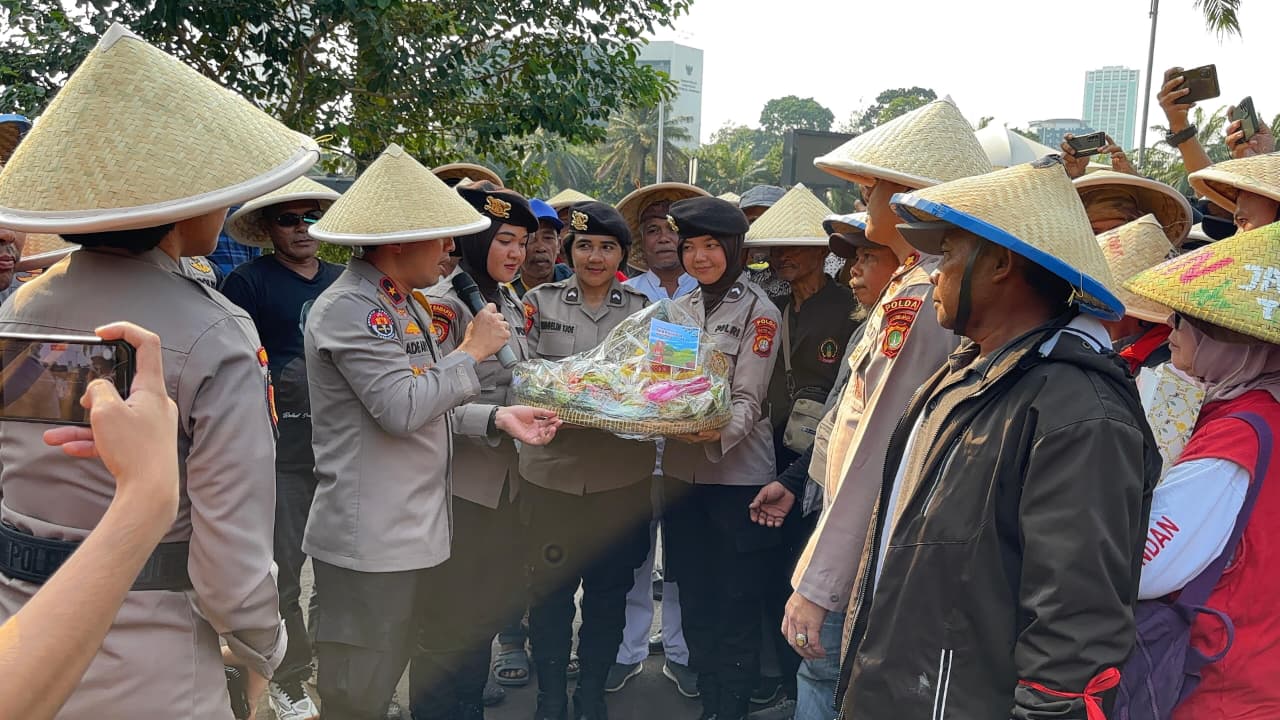 Pengamanan Humanis, Polisi Bagikan Air Minum Hingga Tumpeng ke Massa Aksi Hari Tani di Monas