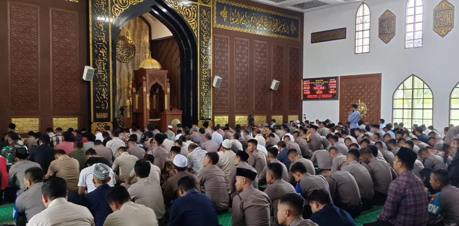 Sholat gaib dilaksanakan di Masjid Arif Nurul Huda, Mapolda Jatim, seusai shalat dzuhur,pada Selasa (18/3/2025).