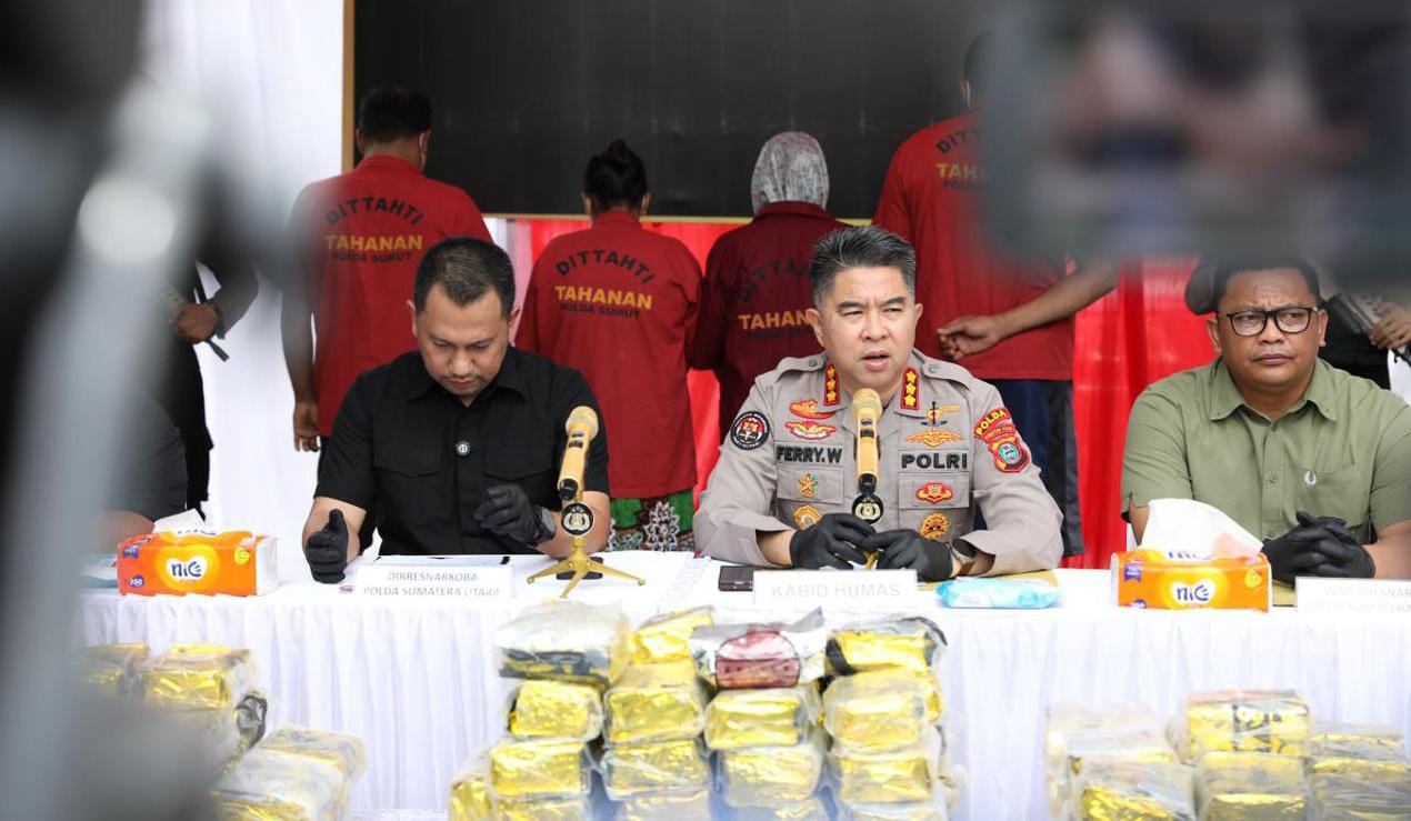 Pengungkapan ini disampaikan dalam konferensi pers di Komplek Tasbih, Medan, Sabtu (17/5/2025), dipimpin Direktur Resnarkoba Polda Sumut Kombes Pol Jean Calvijn Simanjuntak bersama Kabid Humas Kombes Pol Ferry Walintukan dan Wadirresnarkoba.