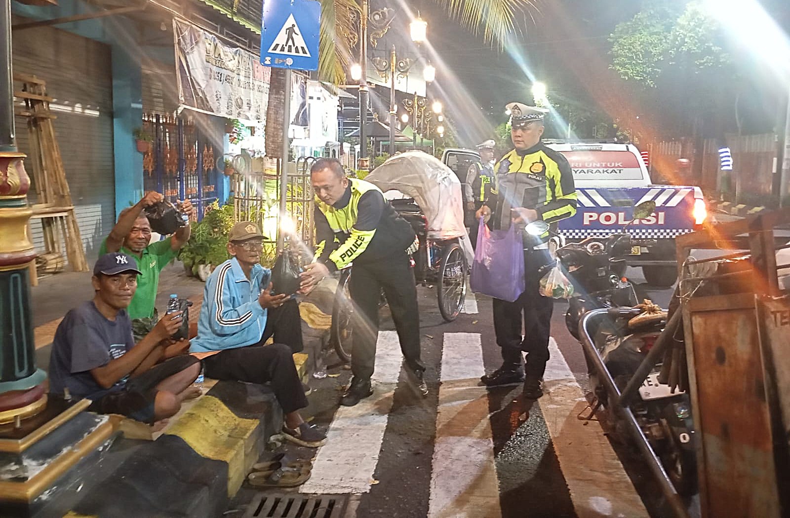 Dalam kegiatan ini, petugas membagikan nasi kotak kepada masyarakat pengguna jalan yang melintas di sejumlah titik rawan aktivitas malam dan dini hari.