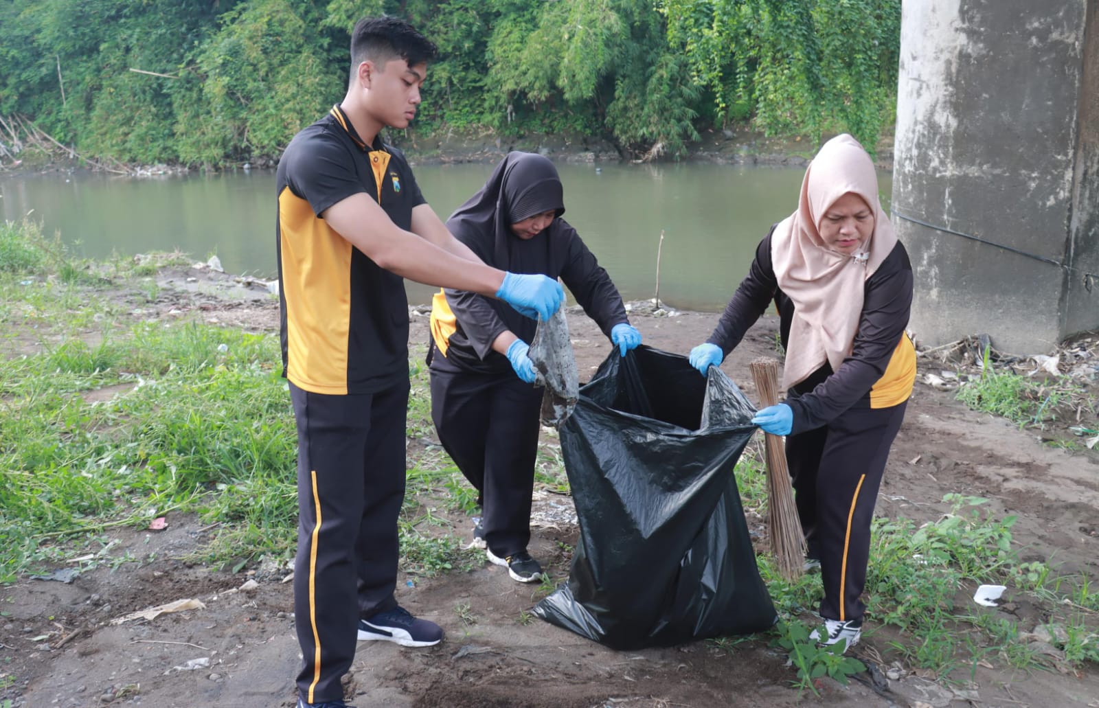 Dengan semangat gotong royong mereka membersihkan area sungai demi menjaga kebersihan lingkungan dan kelestarian alam.