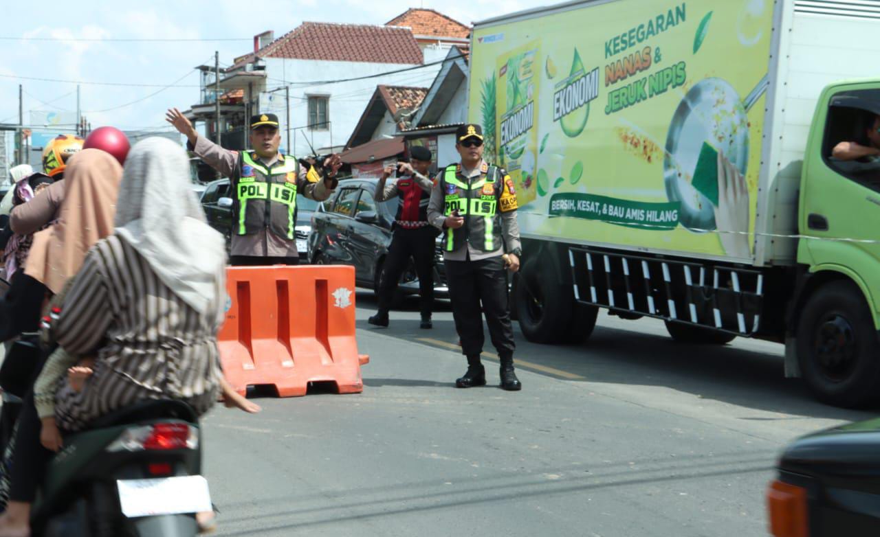 Meski dibawah teriknya sinar matahari yang menyengat, tidak membuat patah arang jajaran kepolisian berjibaku melakukan penguraian lalu lintas untuk memastikan laju kendaraan dari dua arah tetap berjalan normal.