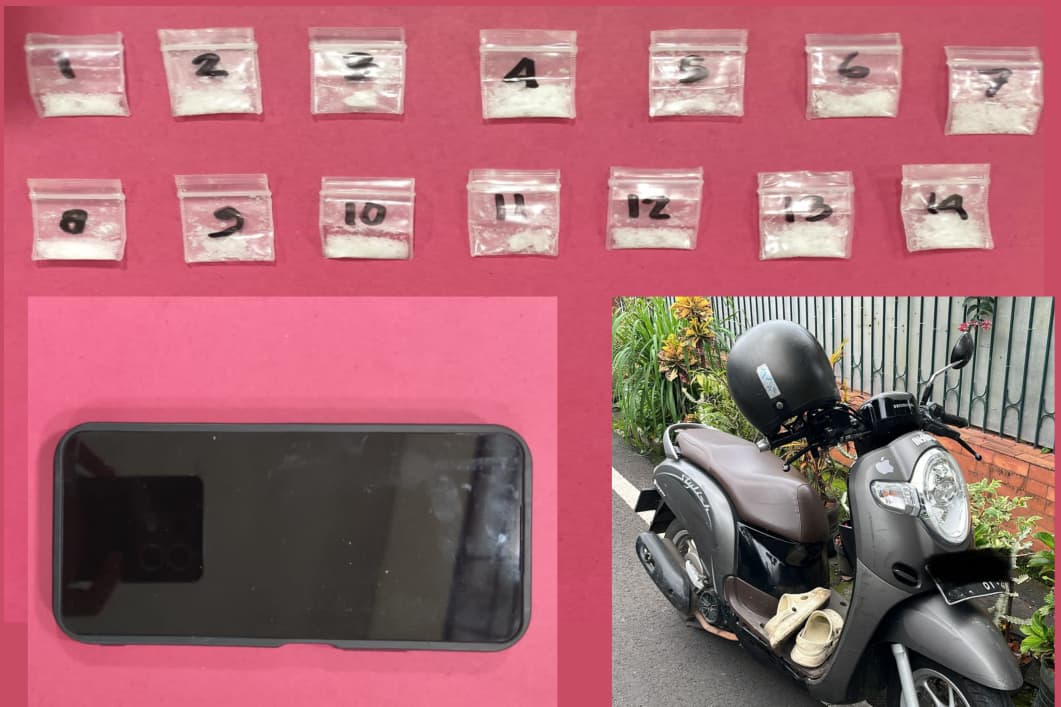 “Melihat gelagat yang mencurigakan, sigap anggota dilapangan melakukan pemantauan hingga tindakan penangkapan BDK dan saat penggeledahan, petugas menemukan 14 plastik klip berisi sabu seberat total 7,45 gram siap edar, serta satu unit HP Google Pixel warna hitam dan sepeda motor merk Honda Scopy Nopol N-50**-EAR milik tersangka” Jelas Kombes Nanang.
