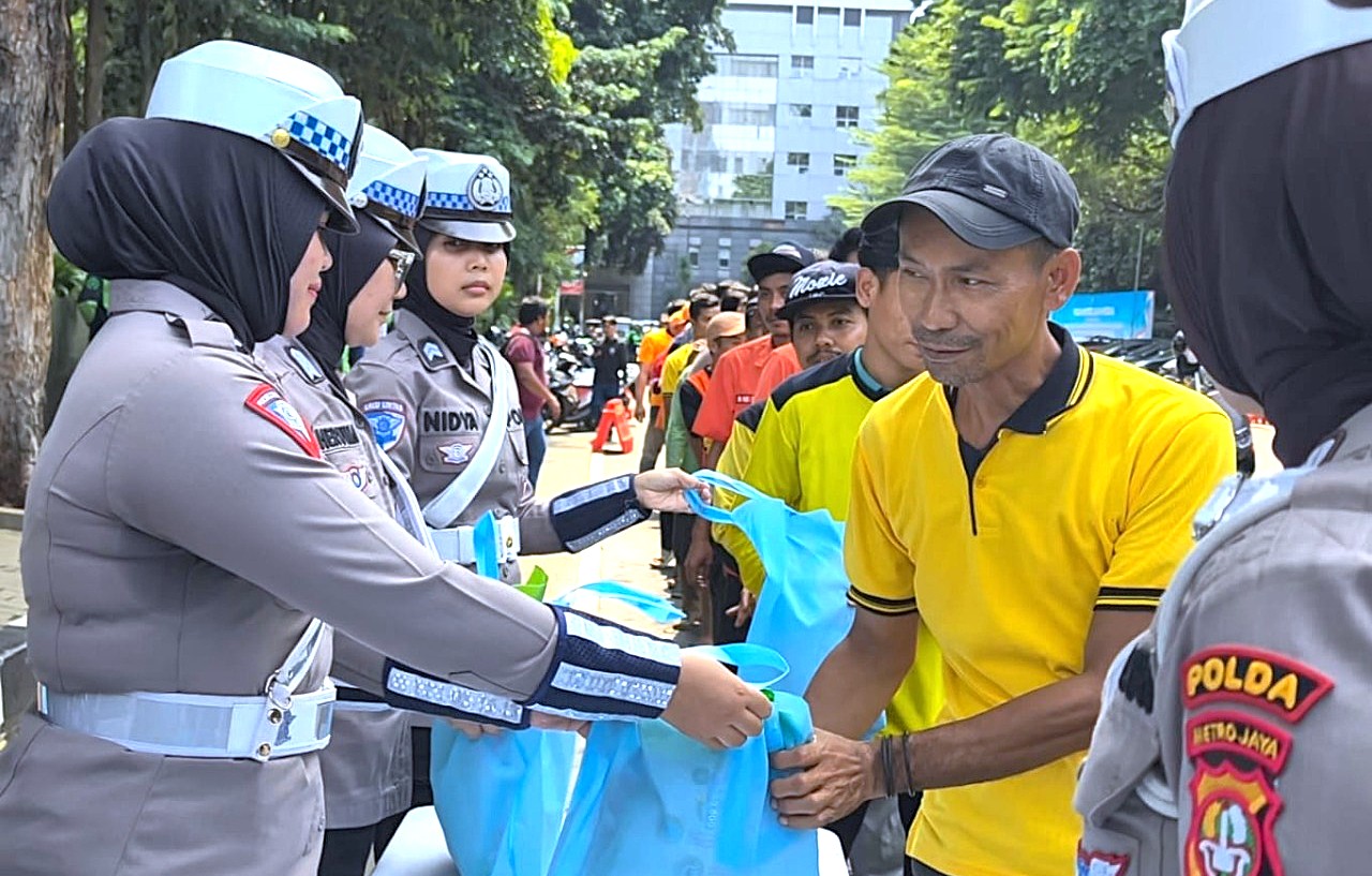 Kegiatan yang berlangsung di Jalanan depan Gedung Promoter Polda Metro Jaya ini menjadi wujud kepedulian Polri terhadap pekerja lapangan yang selama ini berperan penting dalam mendukung mobilitas masyarakat.