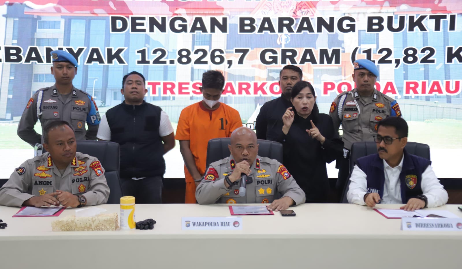 Dir Resnarkoba Polda Riau Kombes Pol. Putu Yhuda Prawira dalam keterangan pers nya menyampaikan bahwa pengungkapan ini terjadi pada 21 April 2025, di salah satu ruas jalan di Kota Pekanbaru yaitu di Jalan SM. Amin dengan mengamankan tersangka H.
