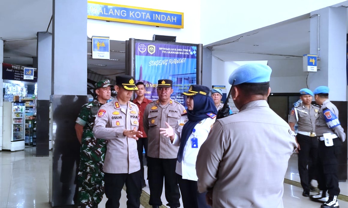 KOTA MALANG — Dalam rangka memperkuat kolaborasi antar instansi dan meningkatkan rasa aman di kawasan vital transportasi, Wakapolresta Malang Kota AKBP Oscar Syamsuddin, SIK, MT sambangi Terminal Tipe A Arjosari, Kota Malang, didampingi Kapolsek, Danramil Blimbing dan Dinas Perhubungan (Dishub) Kota Malang.